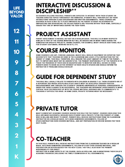 – The first responsibility of the Valor parent is to raise and nurture their student(s) as a disciple (s) of Christ, and we ask them to do that with their whole heart and to the best of their ability as a non-perfect parent, relying on God’s grace daily.